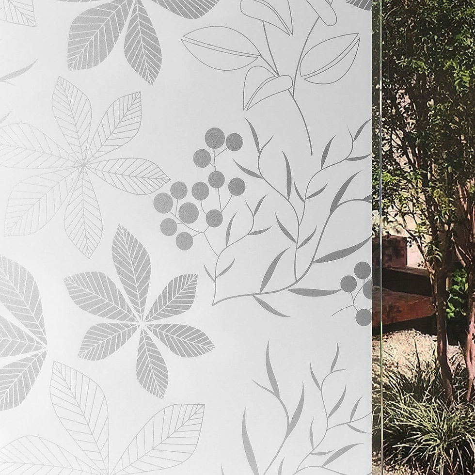 Pelicula Adesivo Eletrostatica Vidro Jateado Branco com Folhas